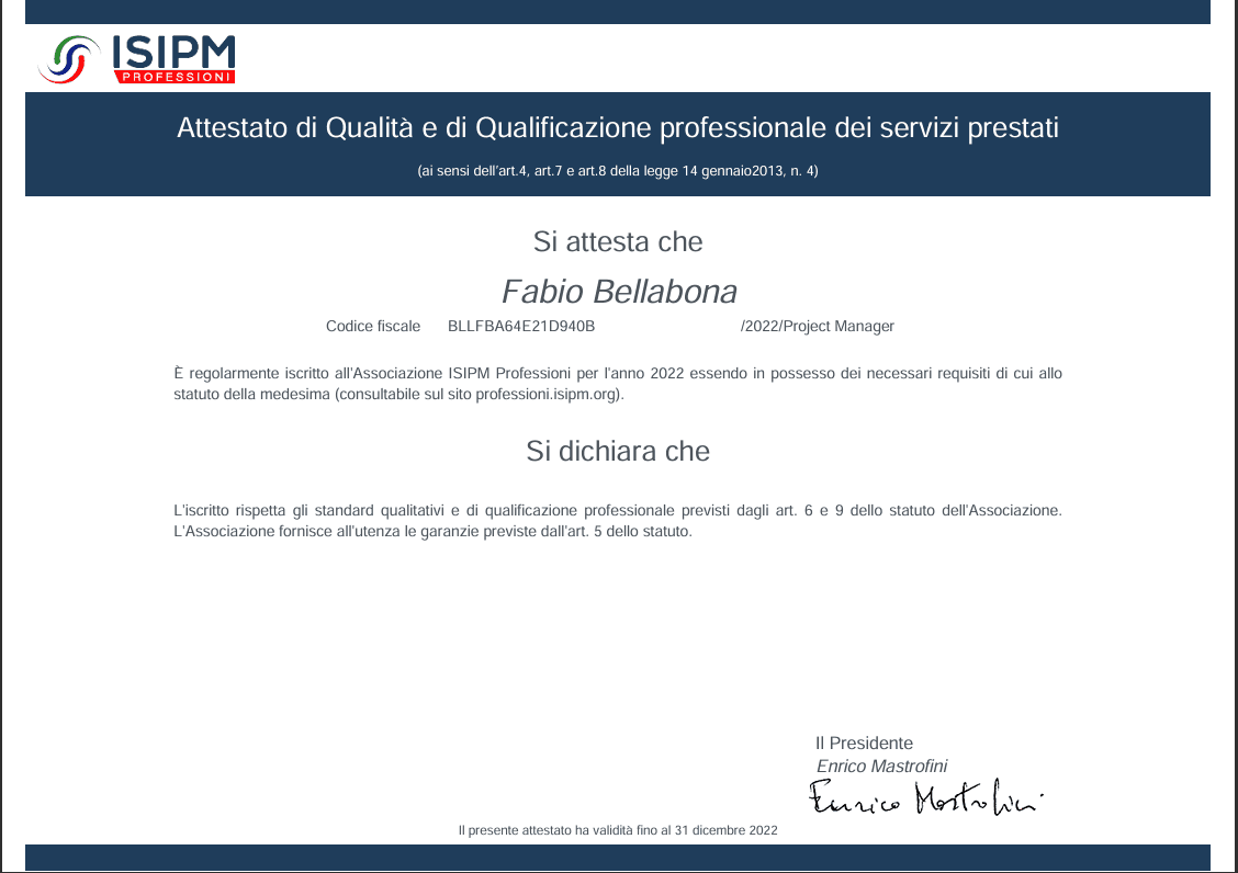 Certificato ISIPM Base numero 14138
